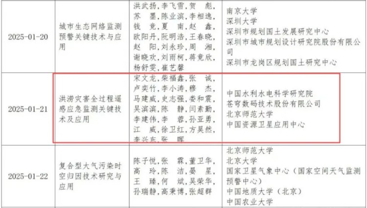 近日,中国地理信息产业协会公布了2025地理信息科技进步奖评选结果。由苍穹数码技术股份有限公司与中国水利水电科学研究院、北京师范大学、中国资源卫星应用中心联合完成的“洪涝灾害全过程遥感应急监测关键技术及应用”项目,荣膺一等奖。