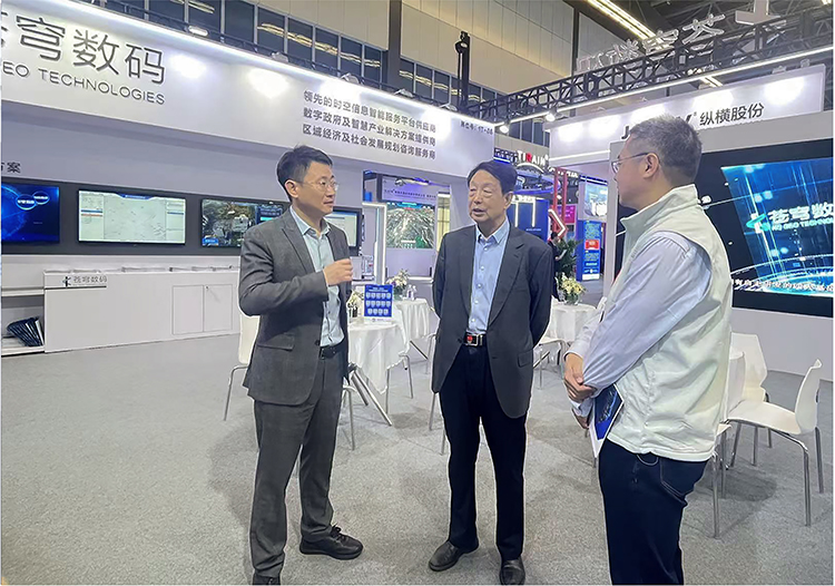 展会期间,苍穹数码展台人气持续高涨。苍穹地理信息平台KQGIS 、苍穹遥感平台KQRS及自然资源、农业农村、智慧城市、水利水务、安监应急、生态环境、林业、海洋、民政等各行业系统解决方案吸引了众多领导、专家及客户参观指导及交流。