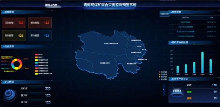 监管端通过全面采集与整理矿山企业信息,对企业静态与动态数据进行多维度分析,展示风险等级分布,提前识别潜在风险,结合智能分级预警机制,有效防止重大事故发生;企业端基于二三维一体化技术,结合智能图像识别、深度学习算法,实现矿山环境的可视化与实时监测,及时发现并预警安全隐患点,保障非煤矿山的安全运行状态。该系统荣获湖北省“2019年度执法行业信息化(智慧应急)最佳创新驱动实践奖”,已在湖北、青海等多地落地实施,获得用户的高度认可。