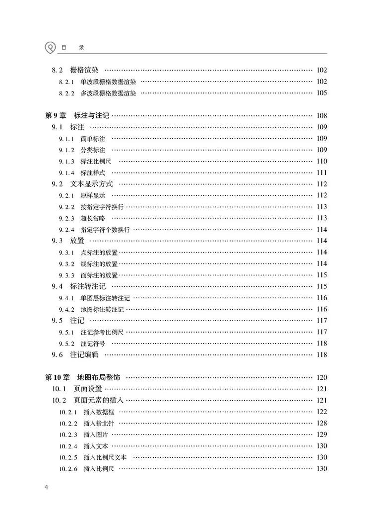 每个知识点配套具体实验步骤,穿插大量截图、图表与案例,直观呈现操作流程,降低学习门槛。章节末尾设置针对性习题,应用篇包含普通地图、专题地图编制等完整项目案例,强化 “学练结合”。