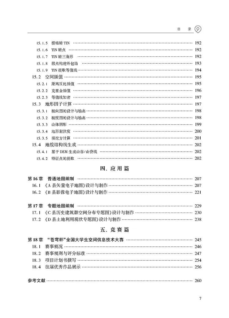 采用“基础篇—进阶篇—扩展篇—应用篇—竞赛篇” 五段式结构,从GIS基础理论、软件操作到空间分析、项目实战、竞赛备赛层层递进。