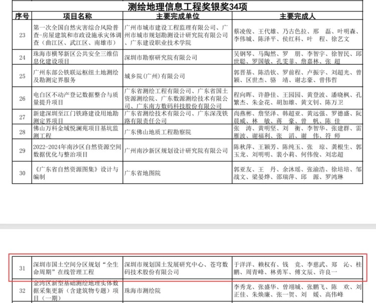 喜讯!深圳国土空间分区规划“全生命周期”在线管理工程荣获金粤自然资源科学技术奖
