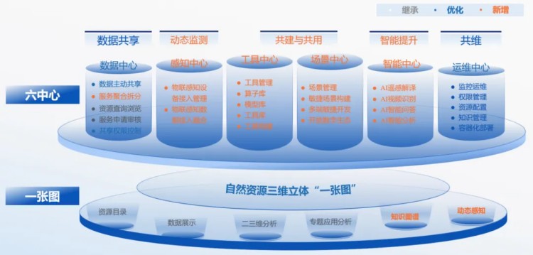 苍穹数码始终坚持“能用、好用、智用”原则,紧扣顶层要求,精准衔接地方信息化建设步伐与实际业务痛点,推陈出新平台版本。新版本以“一张图、数据中心、感知中心、工具中心、场景中心、智能中心、运维中心”七大板块为核心支撑,筑牢“技术中台+数据中台+业务中台”协同架构根基,深度融合人工智能、低代码/零代码构建等新一代信息技术,强化打造共享、共建、共用平台能力,形成日臻完善的“一平台”,为自然资源“两统一”职责履行与数字化治理提供坚实底座。