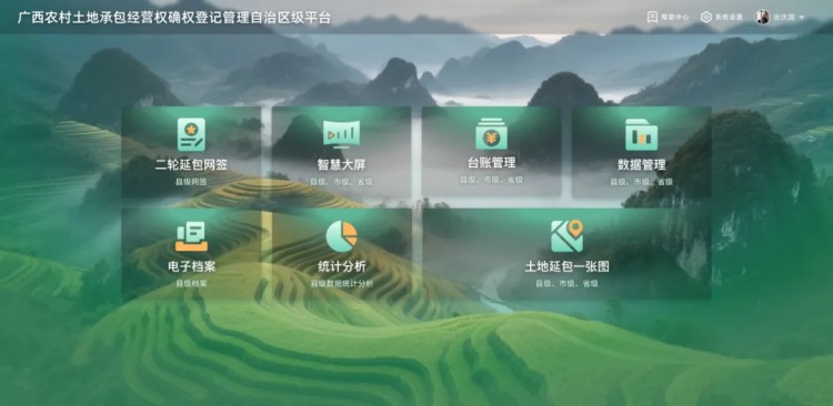 基于现有农村土地承包经营权确权登记颁证成果,依托广西农村土地承包经营权确权登记管理平台基础能力,为区县级单位提供标准化的二轮土地延包合同网签服务,同时打通数据接口,实现与国家农村土地承包合同网签系统的互联互通、数据实时共享。